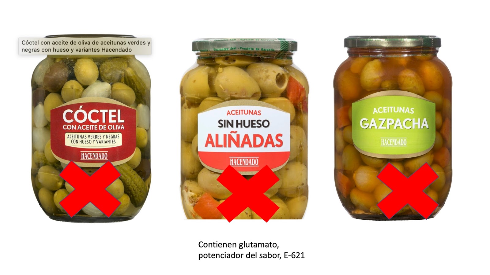 Te pongo algunos ejemplos de aceitunas que no debemos comprar.