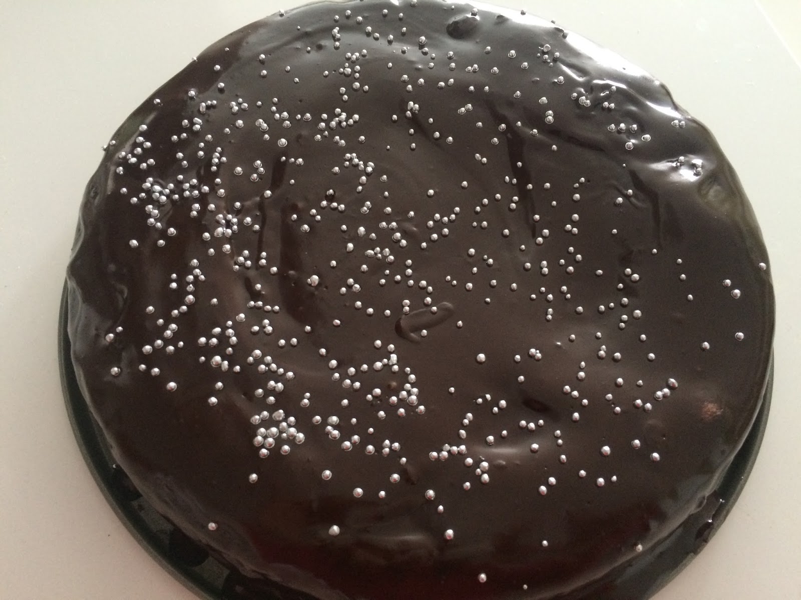 6. Desmolda el bizcocho, cubre con el chocolate y deja que se enfríe y endurezca