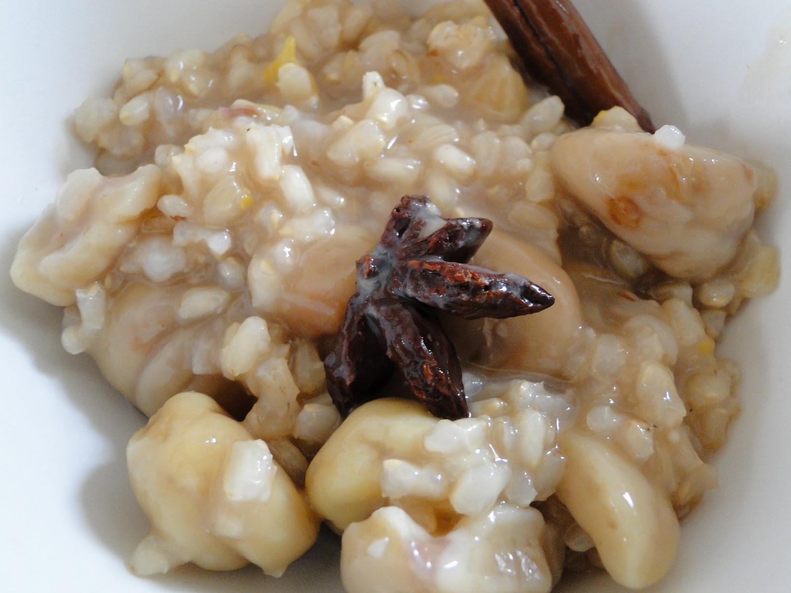 5. Si lo deseamos podemos retirar las castañas y el arroz y obtenemos una rica crema de castañas que podemos usar para otros postres.