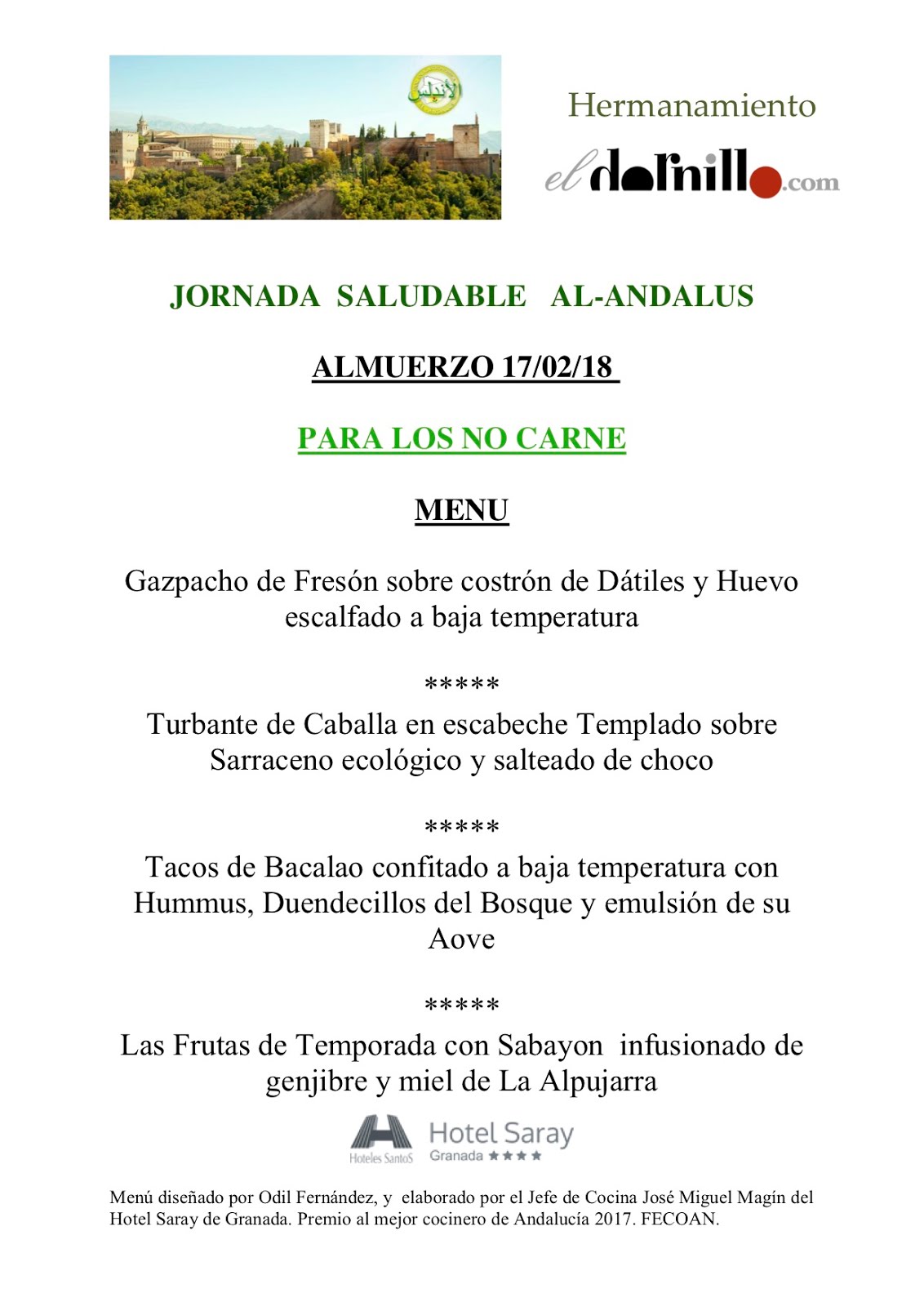 - 17 Febrero. 11-16h. GRANADA. Jornada Alimentación Saludable. Organiza Cofradía Gastronómica Al Andalus. Aprenderemos a alimentarnos de manera saludable para vivir más y mejor y degustaremos un delicioso menú saludable elaborado por Jose Miguel Magín, premio Al Andalus de Gastronomía 2017. Para obtener tus entradas pincha aqui . Más información al final del post