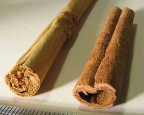 | Izquierda Canela de Ceylan, derecha canela Cassia |