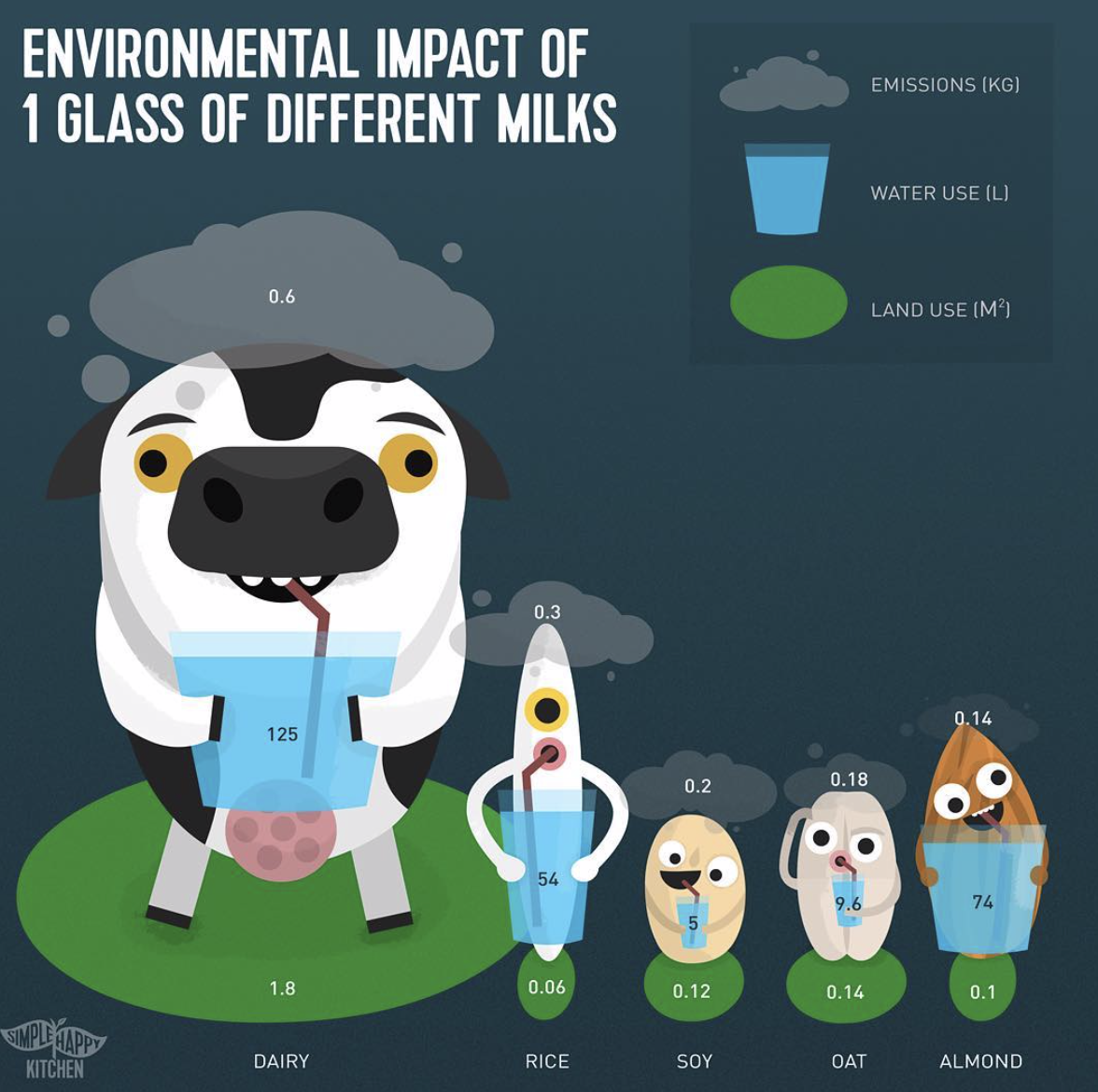 Es más sostenible medioambientalmente consumir bebida de avena que leche de vaca y como hay que limitar el consumo de lácteos, puede ser mejor opción tomar yogur si deseamos tomar lácteos a tomar leche.