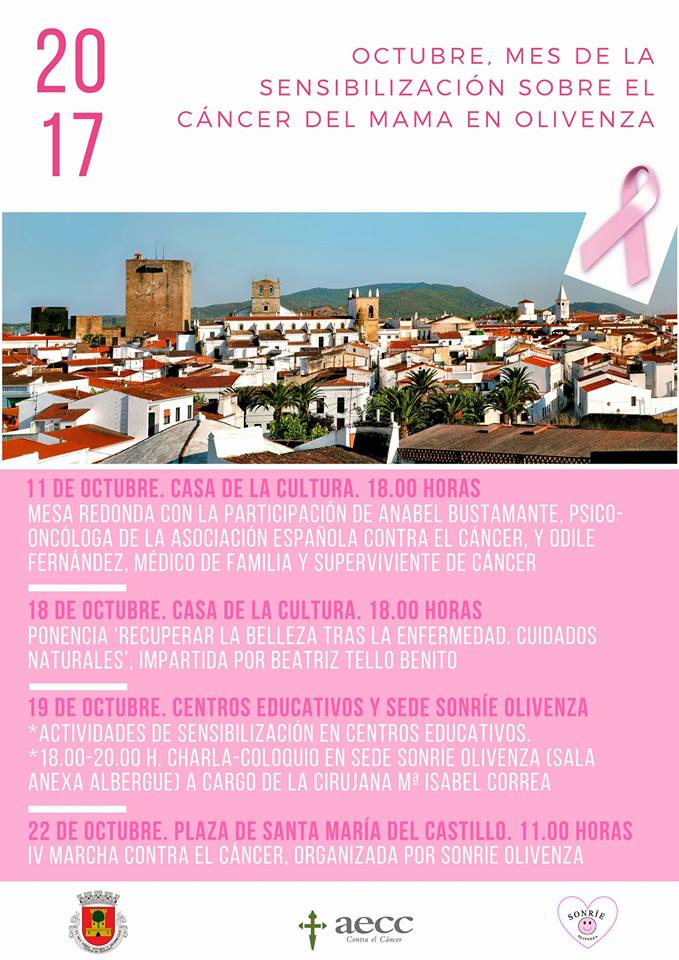 OLIVENZA. El 11 de Octubre a las 18h os espero en la sala de la cultura para hablar de cáncer de mama y alimentación