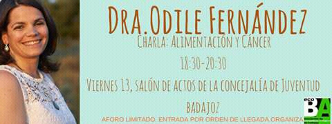 BADAJOZ. 13 Octubre. 1830h. Salón de actos de la concejalía de juventud. Alimentación y Cáncer.
