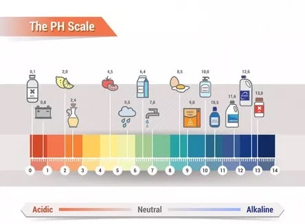 La escala de pH mide entre 1 y 14. Ácida es toda sustancia que en la escala de pH esté por debajo de 7 y básica o álcali es toda sustancia que en la escala de pH esté por encima de 7.