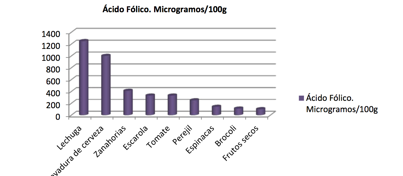 Es una vitamina muy sensible a la luz y al calor. Se disuelve fácilmente en el agua de cocción, por lo que es importante ingerir alimentos crudos que la contengan. Se recomienda la ingesta de 200-300 microgramos al día.
