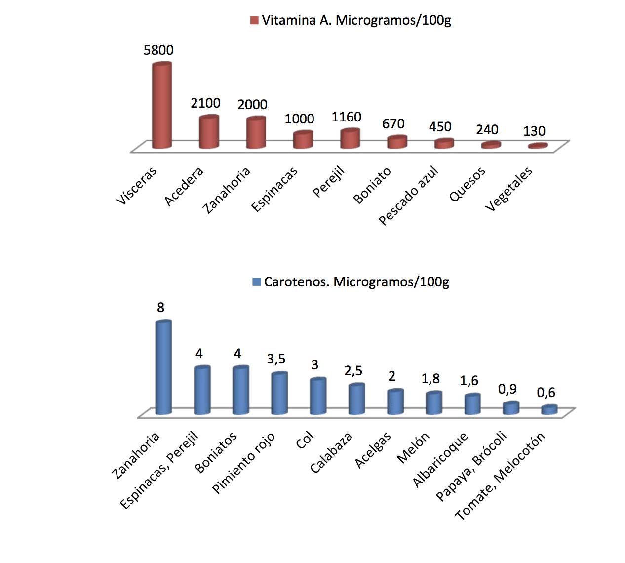 Se recomienda la ingesta de 800-1000 microgramos de vitamina A o retinol al día.