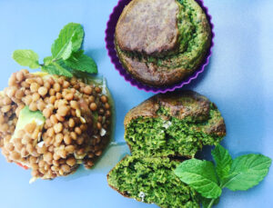Ensalada de lentejas al curry y Muffins integrales de espinacas