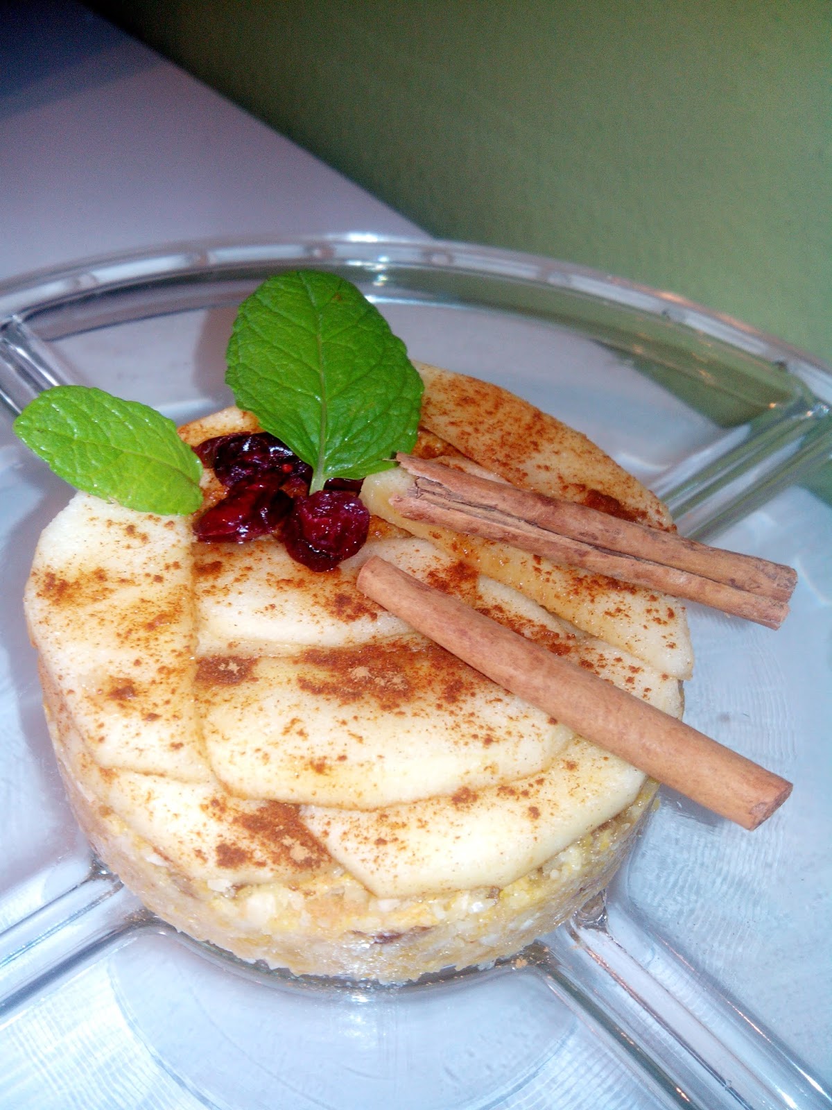 3-Coloca la manzana encima de la base y espolvorea un poco de canela.